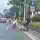 【悲報】中国人女さん、ノーヘルでバイクに乗りながら互いに蹴り合い転倒してしまう