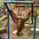 【動画】遊ぶ子供オランウータン、鉄棒がぶつかって泣く