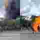 【動画】大きな火災現場から火炎樽が降ってくるのこわすぎ