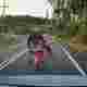 この事故こわすぎ。トラックから飛び出た鉄板にバイカーが衝突してしまう車載。