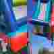 強風に飛ばされたインフレータブル城から子供が落下する大事故。