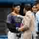 山本由伸さん、優勝トロフィーを抱いて機内でグッスリ眠る