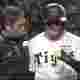 阪神の森下翔太、ロッテの西川史礁に指導する