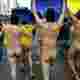 【画像】偶然フルチン全裸デモに遭遇したまんさん、完全に「メスの顔」になってしまうw
