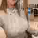 【画像】爆乳ニット女さん、寿司屋で満喫してしまう