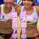 JKさん、前かがみになってタンクトップからこぼれ落ちそう