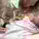 【ネコ】授乳中の飼い主と赤ちゃんにべったりなニャンコ(*´д`*)